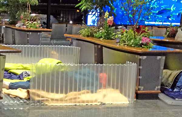 Ladies-who-lunch and professional women visit the durian man in small groups. After selecting, they take their box to a plastic table, pull disposable gloves over their nails and jewelry, and dig in with their hands. I like the dichotomy: these elegant women visit their local supplier to quell a craving, get a quick and messy fix, then peel off the gloves, pop a breath mint, and slip back into society. The aroma will stick to them like illicit cigarette smoke.